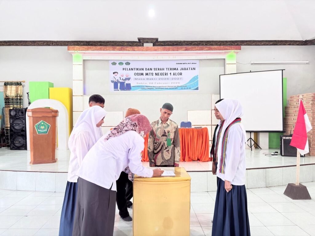 MTs. Negeri 1 Alor (Humas) – Madrasah Tsanawiyah 1 Alor melaksanakan pelantikan pengurus OSIM (Organisasi Siswa Intra Madrasah) untuk tahun ajaran 2026-2027 pada Sabtu (28/02/2026.) Acara ini dilaksanakan di Aula MTs Negeri 1 Alor dengan dihadiri oleh Kepala Madrasah, para guru dan siswa-siswi. Pelantikan ini menjadi momen penting bagi para siswa yang terpilih untuk mengemban […]